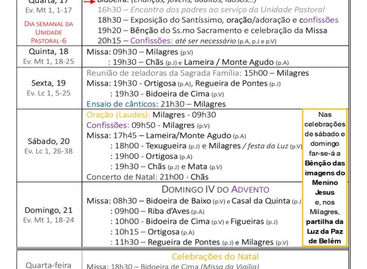 Programa Pastoral | de 15 a 21, 24 e 25 de dezembro