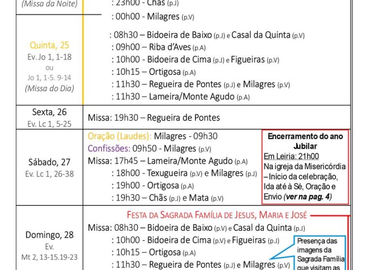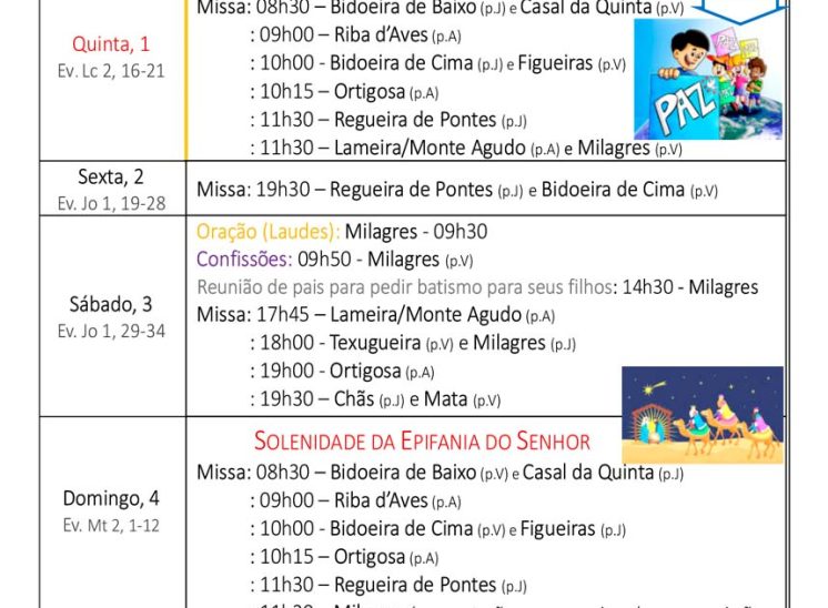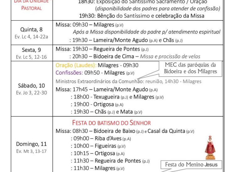 Programa Pastoral | de 29 de dezembro a 4 de janeiro