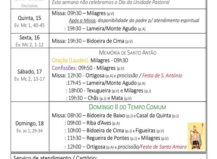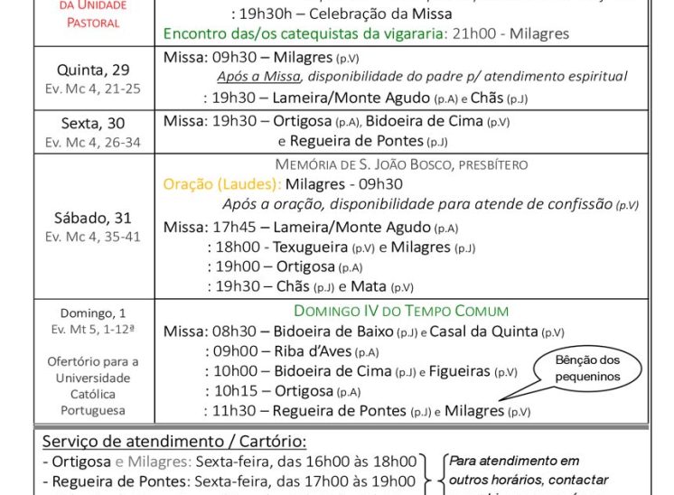 Programa Pastoral | de 26 de janeiro a 1 de fevereiro