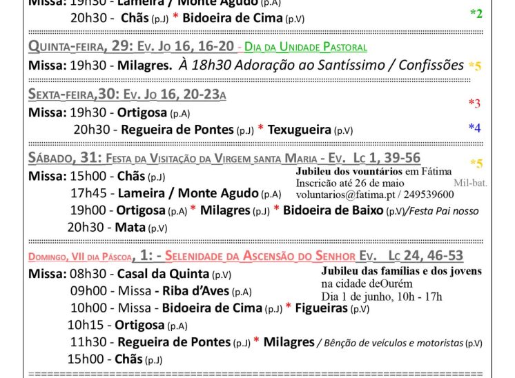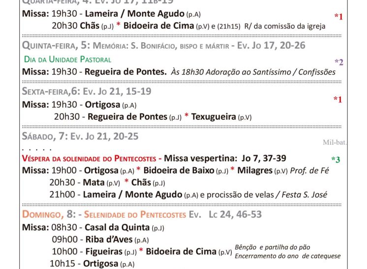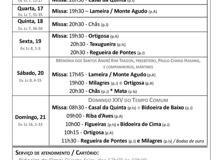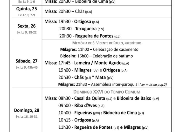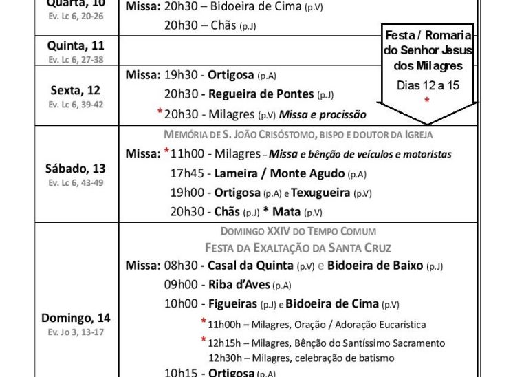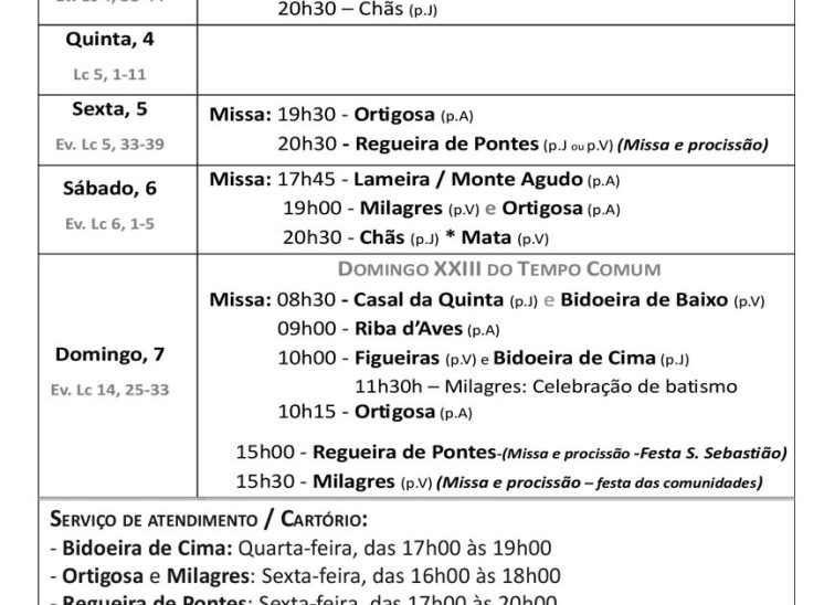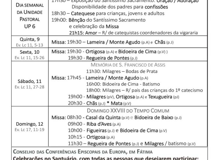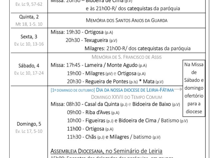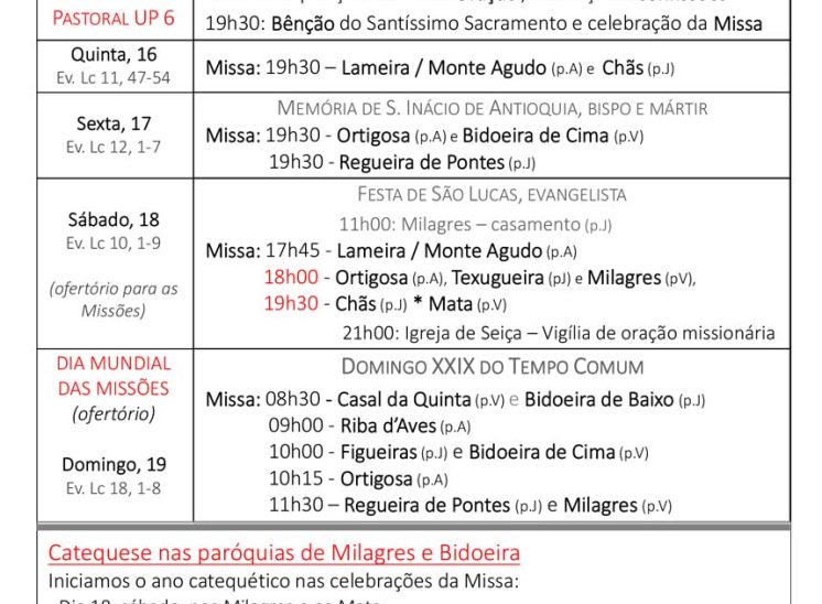 Programa Pastoral | de 29 de setembro a 5 de outubro