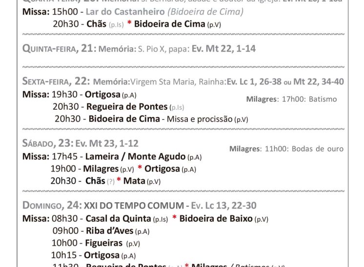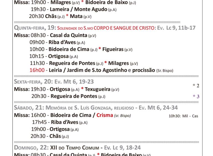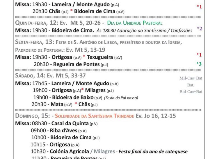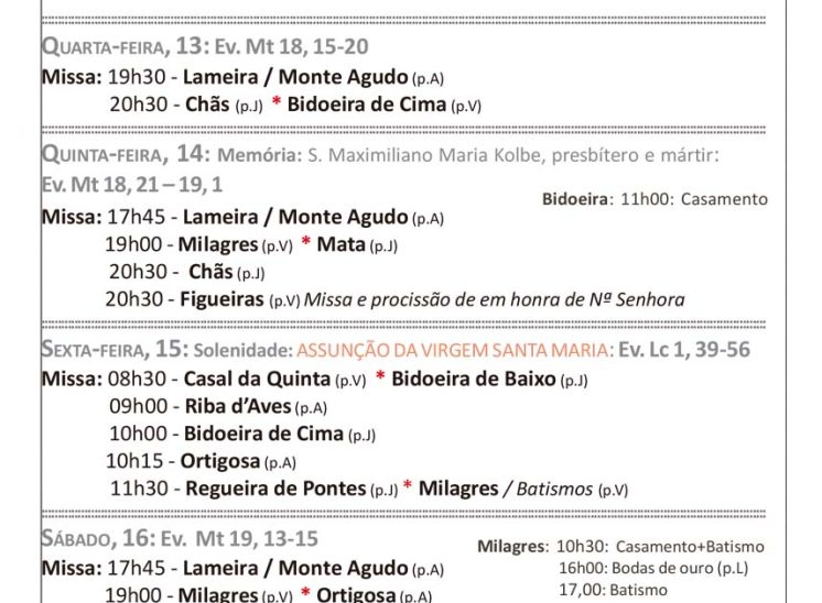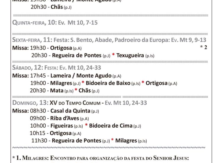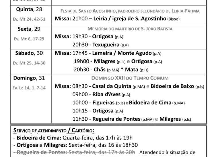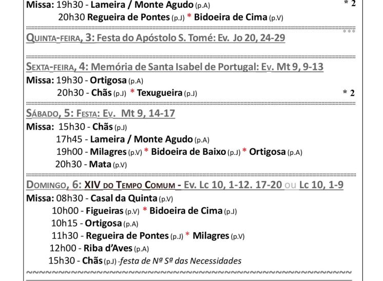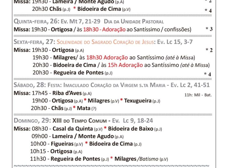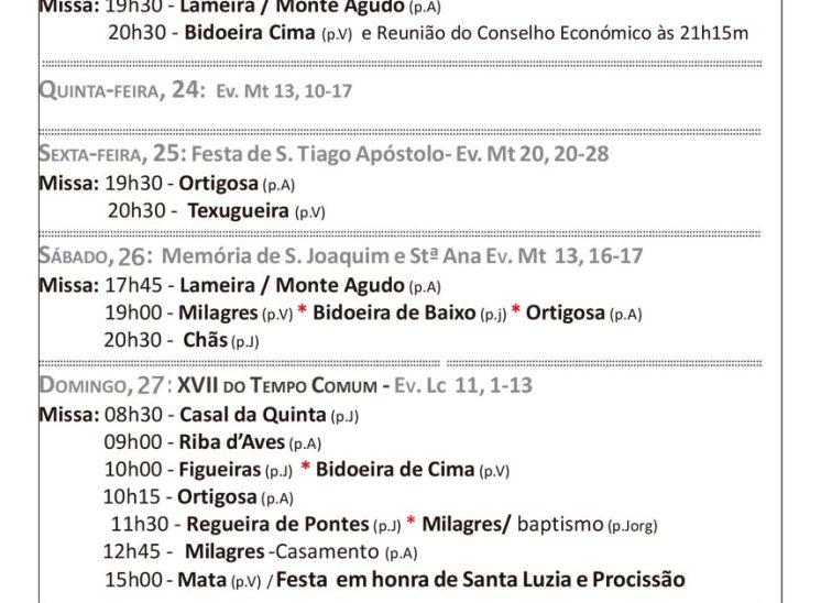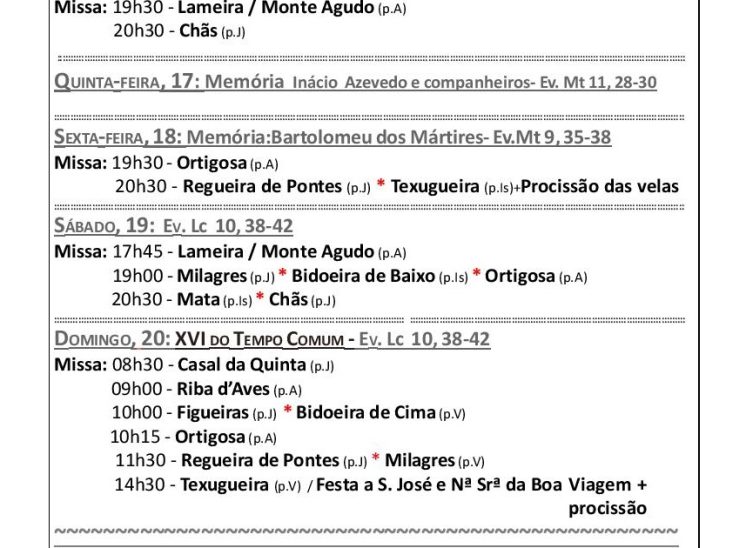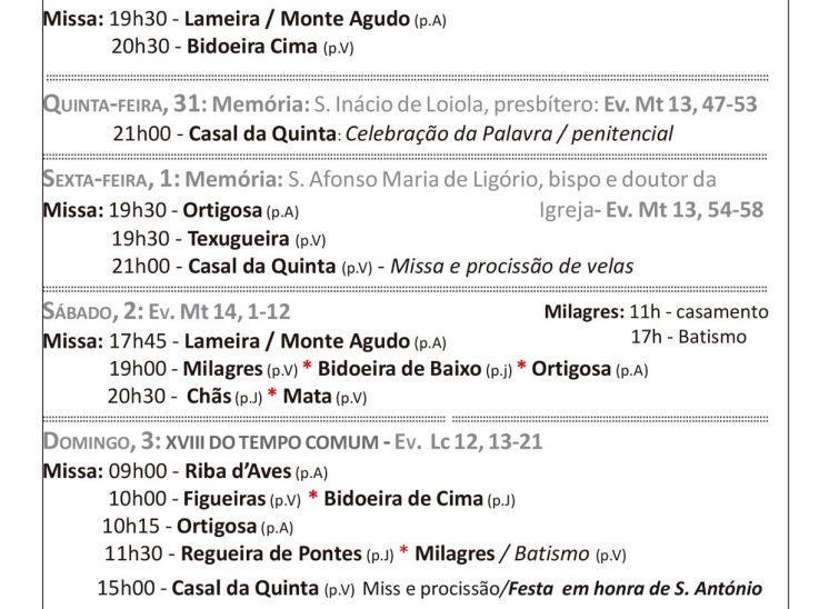 Programa Pastoral | de 28 de julho a 3 de agosto