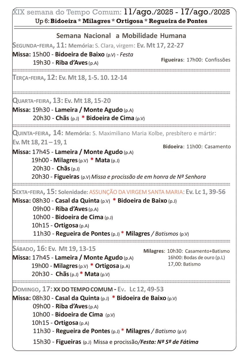 Programa Pastoral | de 11 a 17 de agosto