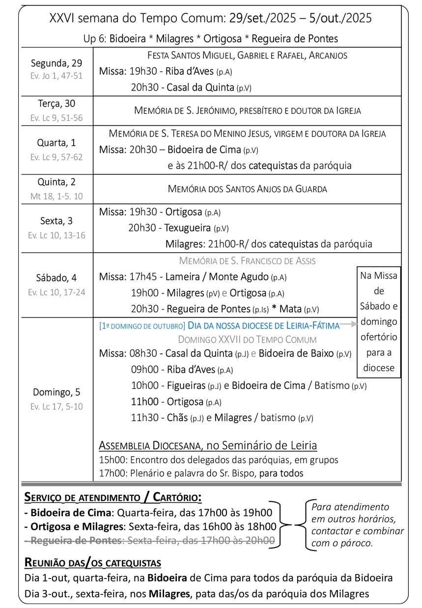 Programa Pastoral | de 29 de setembro a 5 de outubro